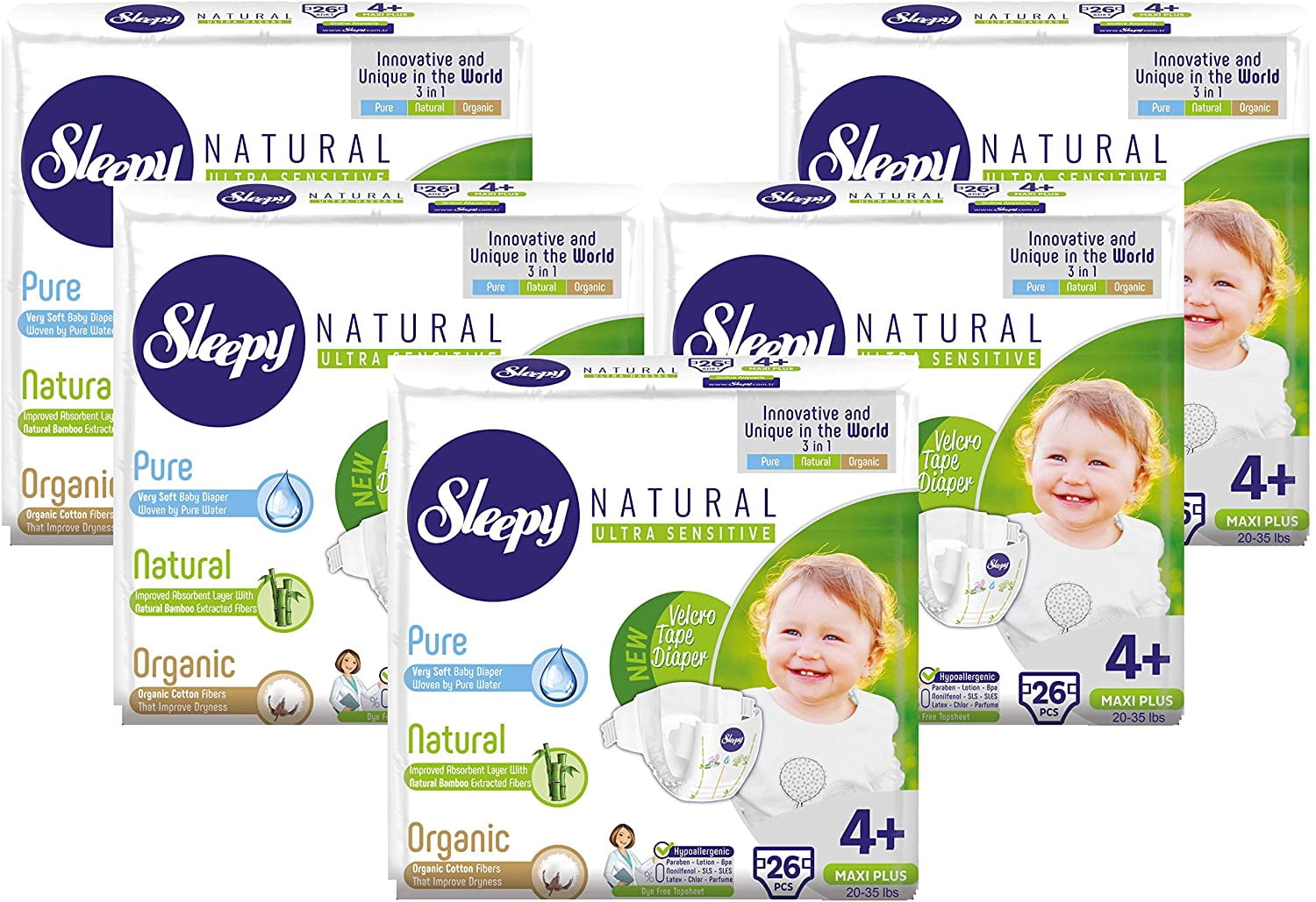 Sleepy Natural Diapers Size 4 Plus Organic Diapers Highly Absorbent And Hypoallergenic Bamboo Baby Diapers For Girls And Boys Disposable Diapers 130 Count Size 4 Diapers Child Weight 20 35 Lbs Walmart Com
